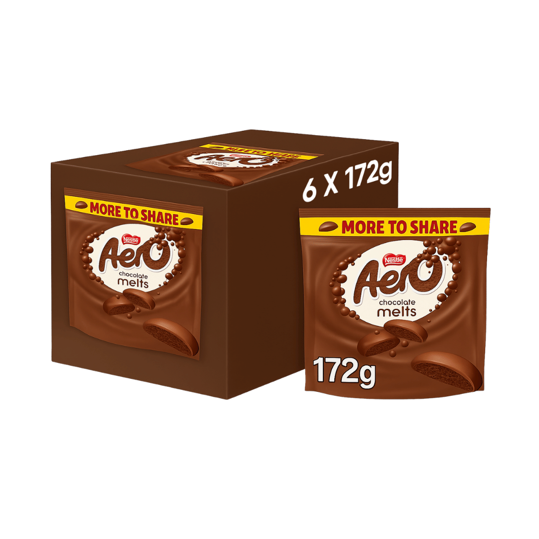 Get ready to share moments of pure chocolate joy with Aero® Milk Chocolate Melts – the iconic bubbly chocolate now in smooth, button-sized bites. These aerated chocolate pieces melt effortlessly on the tongue, releasing bubbles of flavour and indulgence in every mouthful.