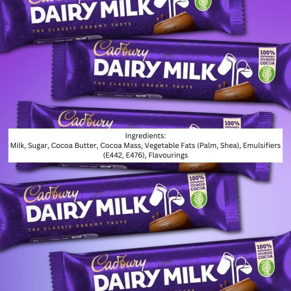 The one. The only. Indulge in the timeless taste of Cadbury Dairy Milk – made with a glass and a half of fresh milk from the British Isles and Ireland, for that unmistakably smooth, creamy texture loved since 1904.