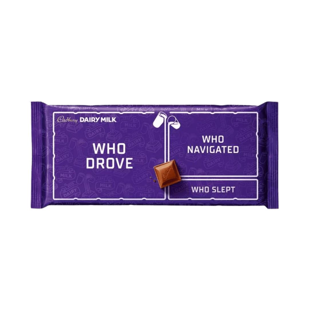 As part of the Made to Share range, this special bar embodies the spirit of generosity and connection – with playful front-of-pack prompts like “Who Pays the Subscription?”, “Who Drove?”, and “Who Cooked?” to help you decide who deserves the biggest share.