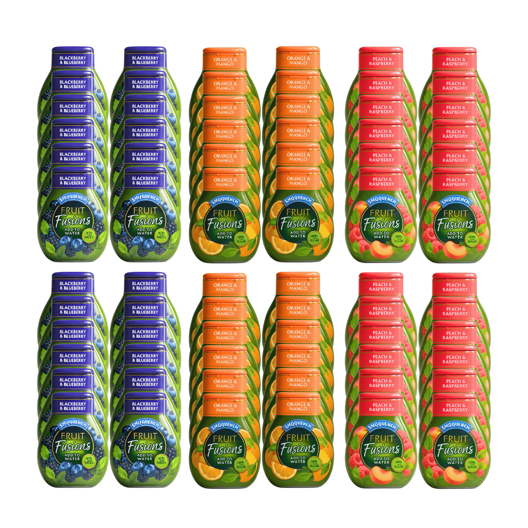 Sun Quench Fruit Fusions Squirty Squash Water Enhancers deliver a fruity burst of flavour in a sleek, travel-friendly bottle. Perfect for busy lifestyles, each 66ml bottle makes up to 20 drinks – just squeeze into water and enjoy a deliciously refreshing, no-added-sugar beverage anywhere, anytime.
