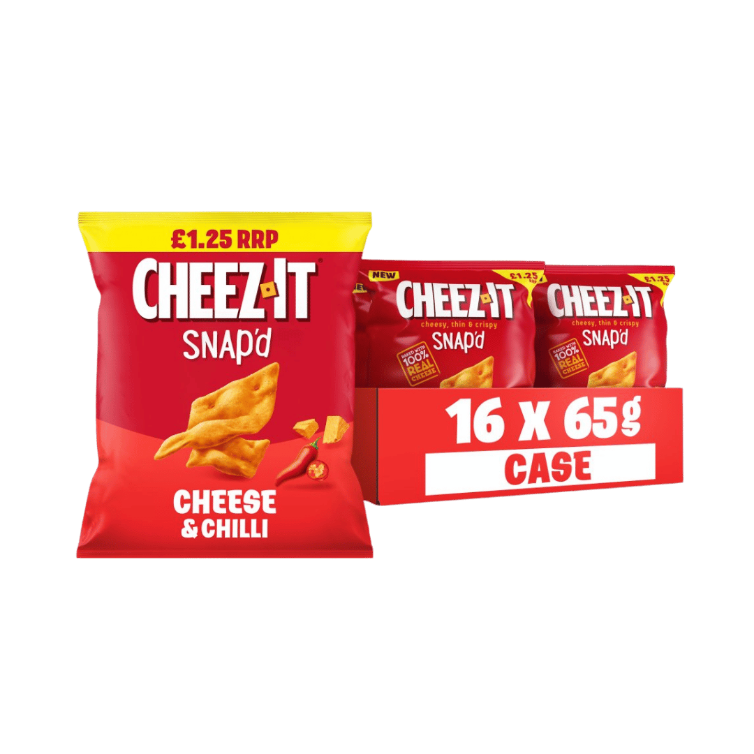 A bold, cheesy and lightly spicy snack that delivers a perfectly thin, crispy bite every time. Cheez-It Snap’d Cheese & Chilli Crisps are baked, not fried, giving you a light crunch packed with rich cheese flavour and a warming chilli kick.