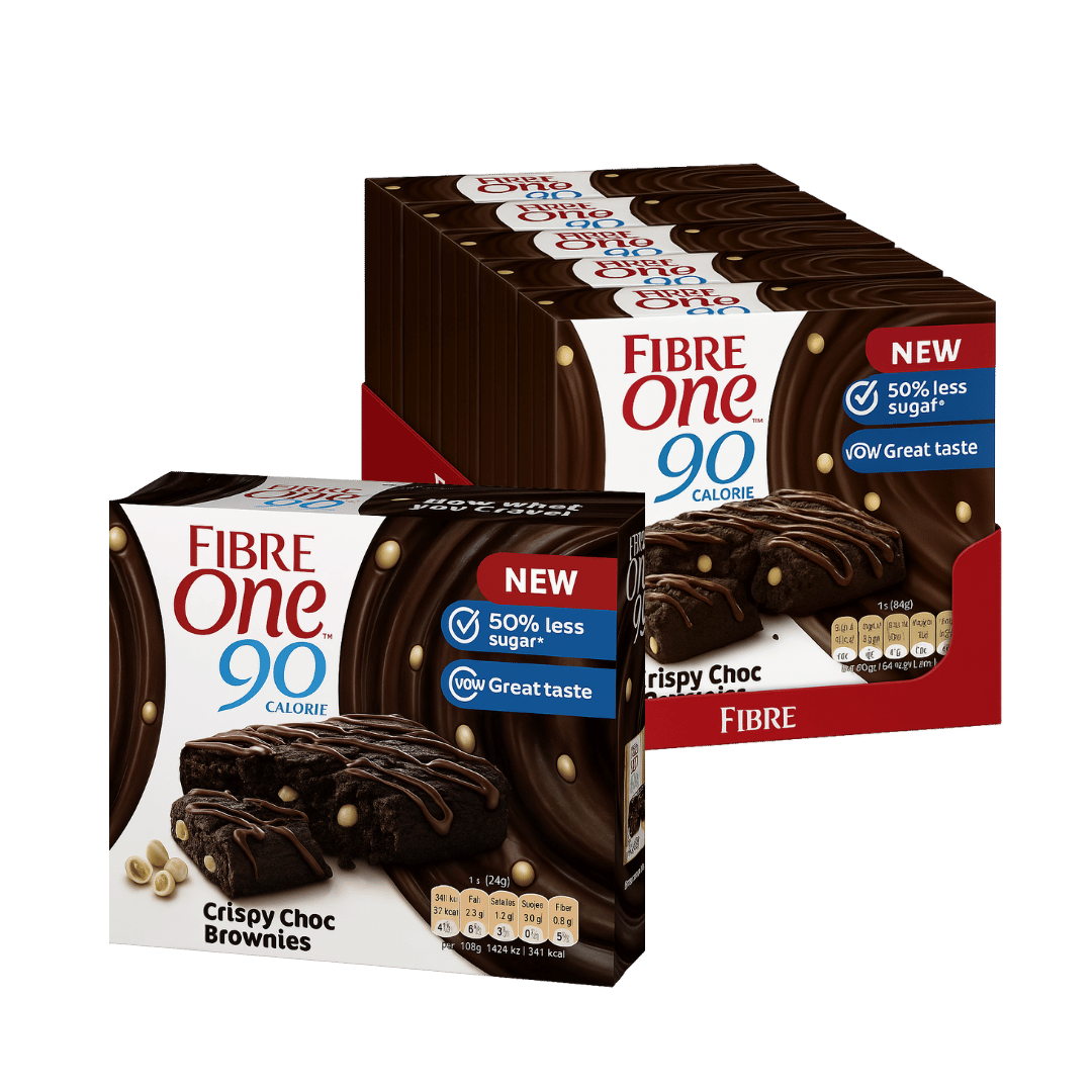 Satisfy your sweet tooth without the guilt with Fibre One Crispy Chocolate Brownies – soft-baked, indulgent brownies with a chocolate drizzle and crispy coated puffs for that perfect crunch. Each bar is just 90 calories and packed with fibre, making it a smart snack that doesn’t sacrifice on flavour.