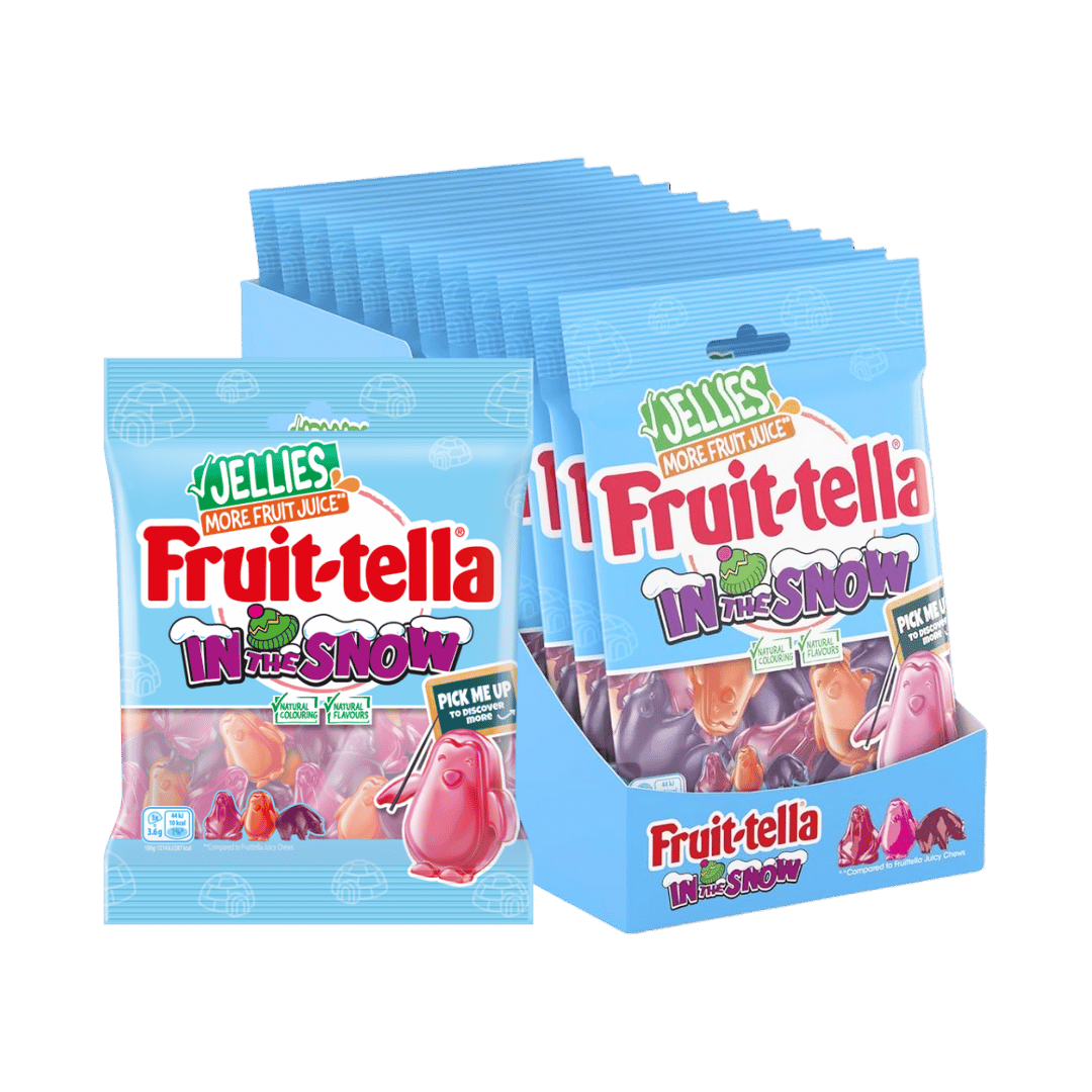 Step into a world of wintery delight with Fruittella In The Snow Jellies – delicious jelly sweets shaped like penguins, walruses, and polar bears! Bursting with the fruity flavours of strawberry, raspberry, and blackberry, these chewy treats are made with 30% less sugar and more real fruit juice (6%) for a guilt-free moment of fun.