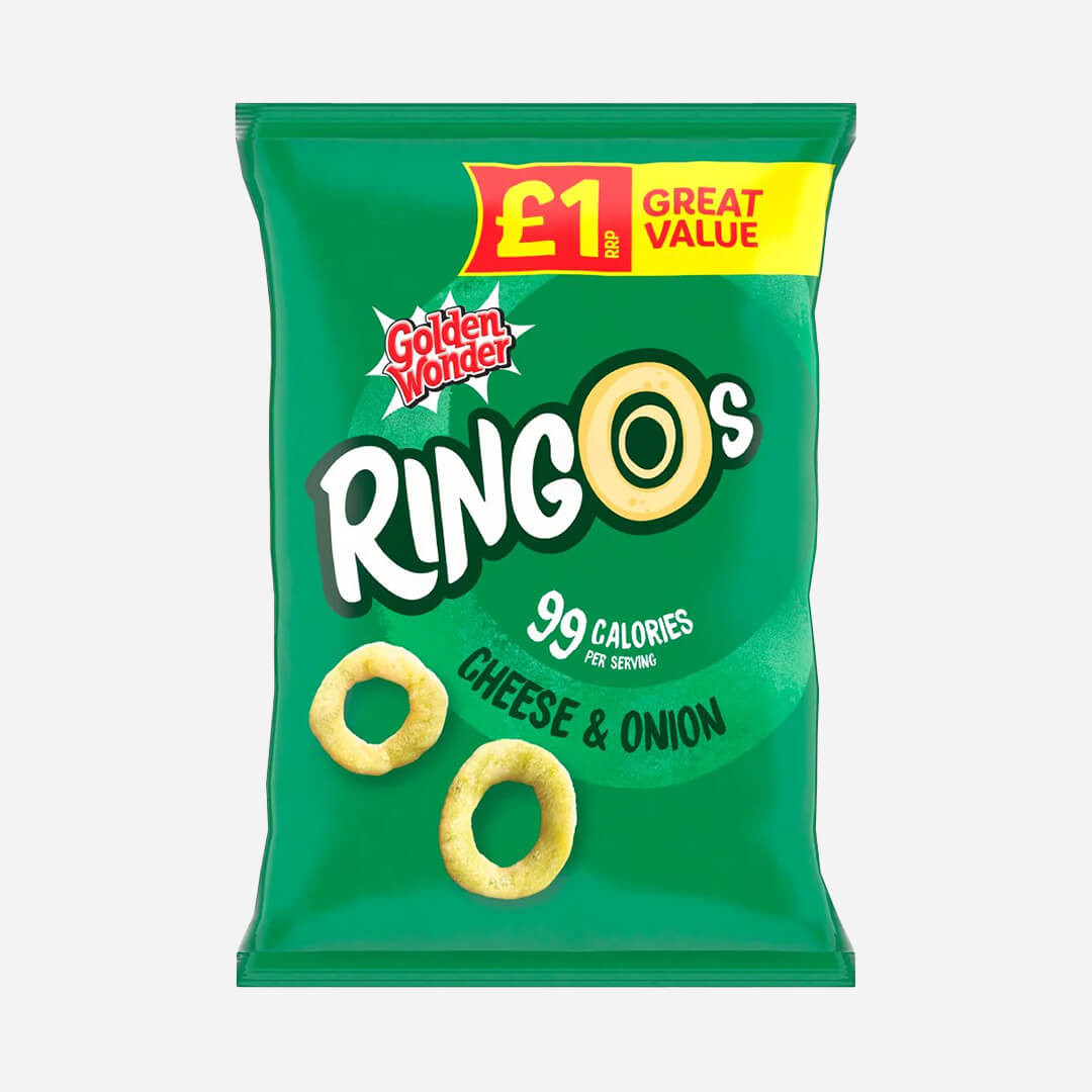 Oh-so-cheesy and irresistibly oniony, Golden Wonder Ringos Cheese & Onion are the ultimate light snack with big-time flavour. These airy rings bring a satisfying crunch and an intense hit of savoury goodness that keeps you coming back for more.