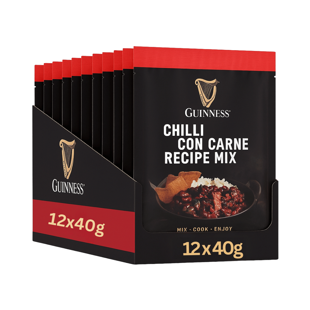 Bring the distinctive essence of Guinness to your kitchen with this Chilli Con Carne Recipe Mix. Create a hearty, smoky chilli in under 30 minutes with a delicious depth of flavour that tastes like it’s been slow-simmering for hours. Perfect for adding warmth and richness to your home cooking.