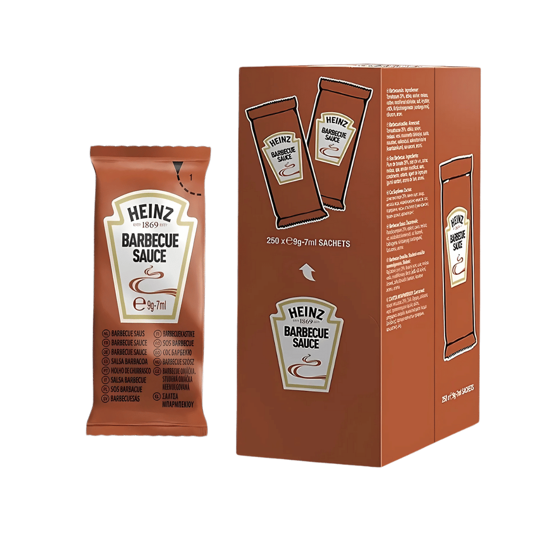 Add a burst of bold, smoky flavour to your meals with Heinz BBQ Sauce Sachets. These 250 x 7ml single-serve sachets are perfect for portion control and hygienic serving across foodservice, takeaway, events, or packed lunches.