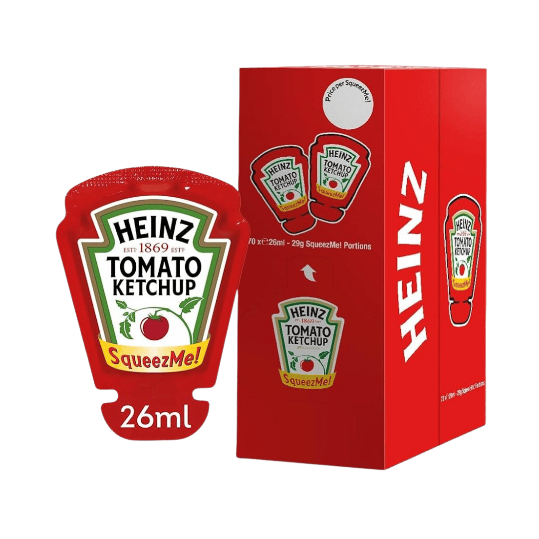 Enjoy the classic taste of Heinz Tomato Ketchup in a handy format with these SqueezMe! single-serve 26ml portions. Perfect for foodservice, takeaway, picnics, lunchboxes, and on-the-go meals, each portion delivers the rich, thick, unmistakable flavour of Heinz in a mess-free format.
