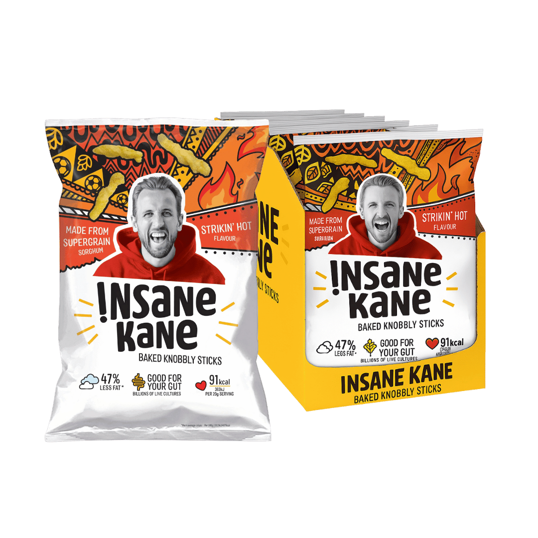 Snack smarter with Insane Grain Strikin’ Hot Baked Knobbly Sticks. These fiery baked sticks aren’t just insanely tasty – they’re packed with goodness too. With 47% less fat and less salt than average crisps, they’re also a source of fibre and vitamin B12, and include a probiotic to deliver billions of live cultures for gut health.
