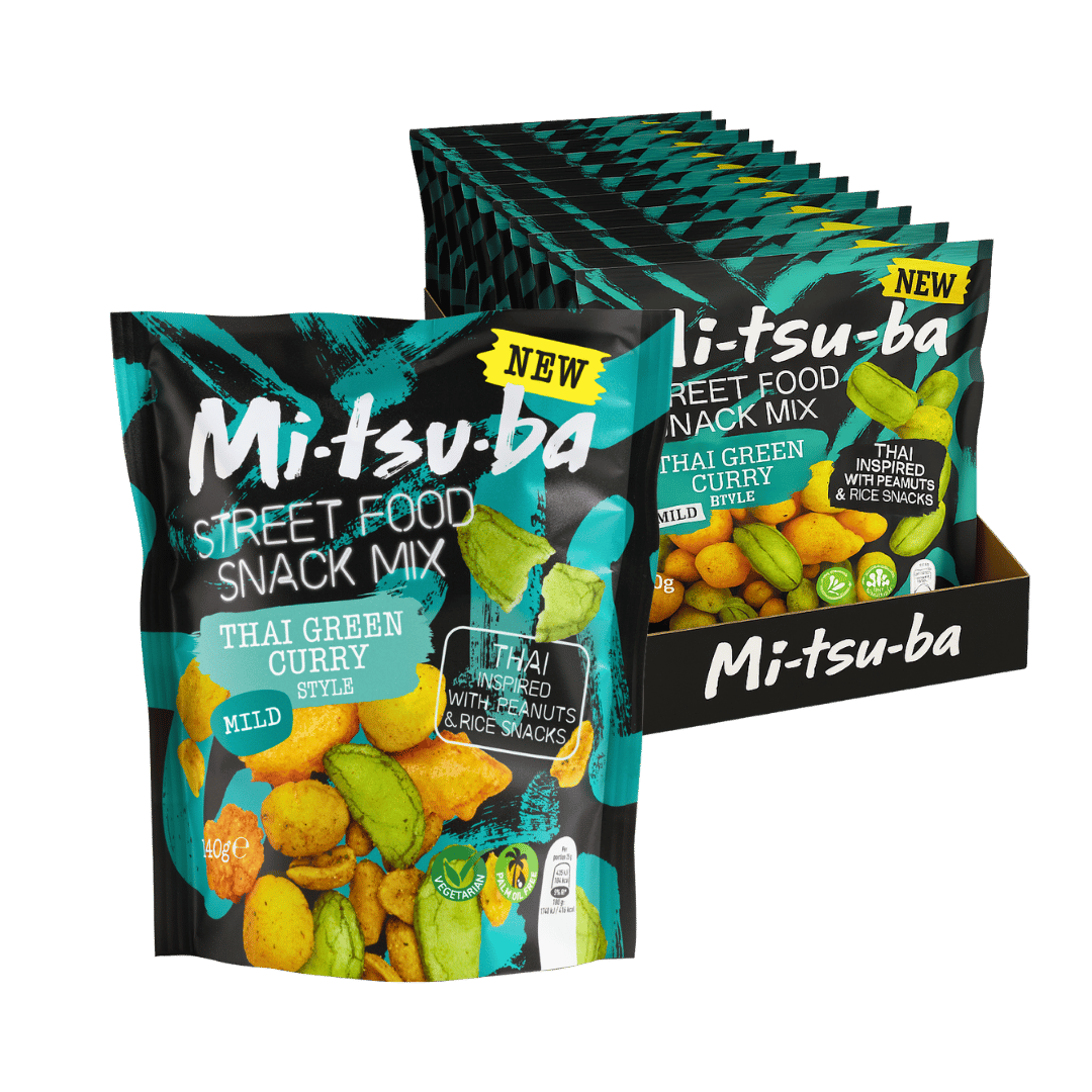 Mitsuba Thai Green Curry Style Streetfood Snack Mix – 18 x 140g Packs 🌶️🥜🍘