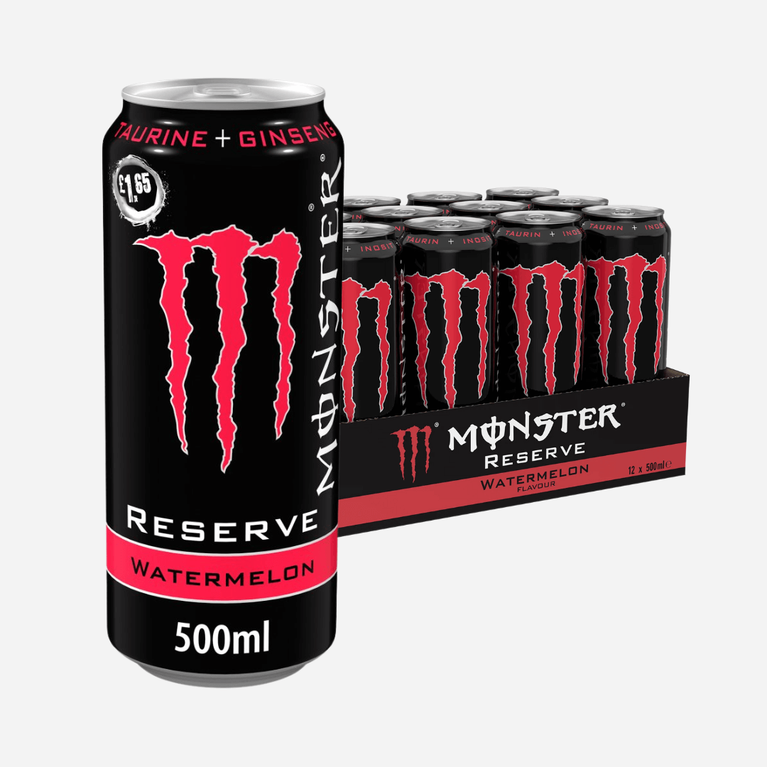 Power up with Monster Energy Reserve Watermelon – the ultimate energy boost with a juicy, refreshing watermelon kick! 🍉🔥 Packed with Monster’s signature energy blend, this drink delivers maximum performance with a smooth, bold flavour to keep you going strong.