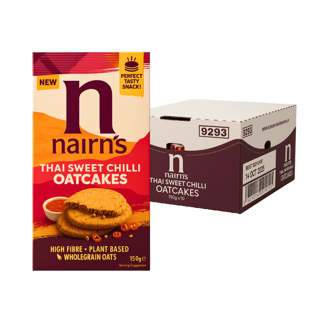 Nairn’s Thai Sweet Chilli Mini Oatcakes combine the natural goodness of wholegrain oats with a subtle sweet chilli kick. Bite-sized and versatile, they’re ideal for canapés, dipping, snacking, or sharing at gatherings. Packed in handy pouches for freshness and convenience, they’re a delicious plant-based option everyone can enjoy.