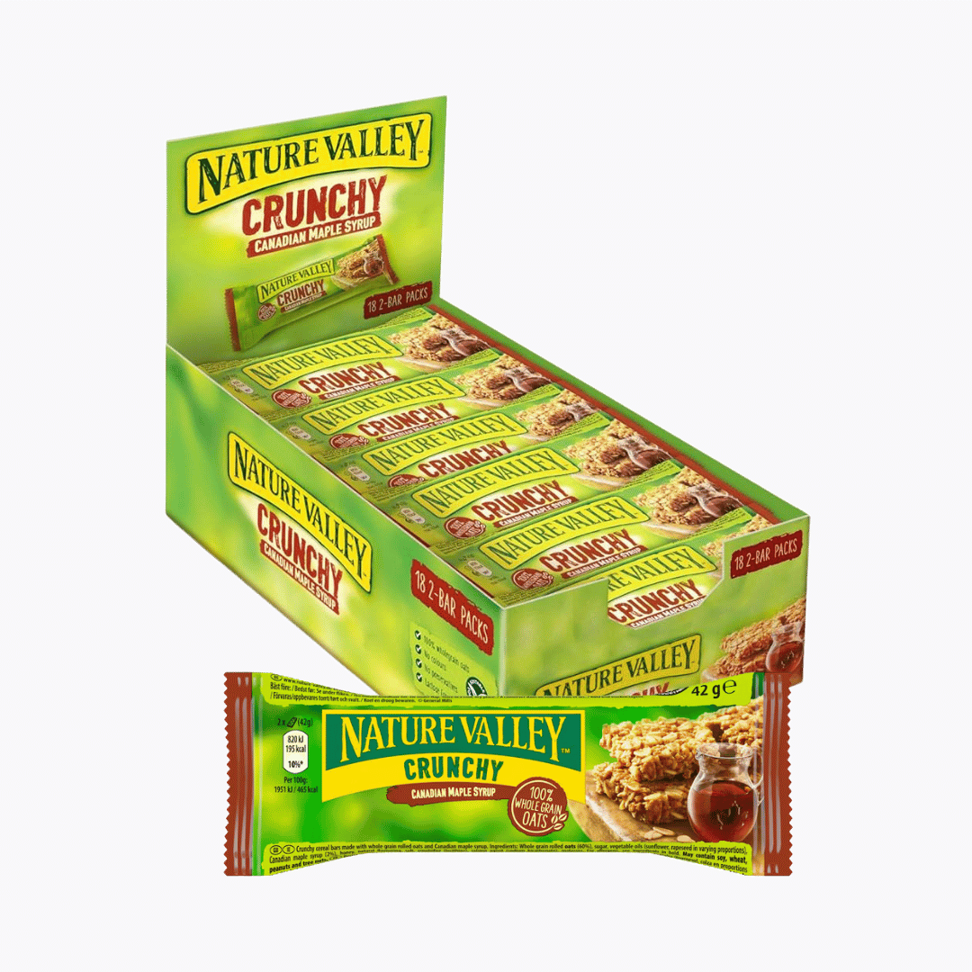 Packed with whole grain rolled oats and authentic Canadian maple syrup, Nature Valley™ Crunchy Canadian Maple Syrup Bars deliver a naturally delicious snack that’s perfect for on-the-go energy. Each pack contains two golden, crunchy bars made with no artificial colours, flavours, or preservatives – just wholesome ingredients to keep you going.