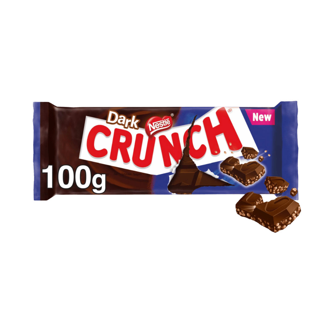 Indulge in the bold twist on a classic with Nestlé CRUNCH® Dark Chocolate – a satisfying mix of crispy cereal pieces and rich, smooth dark chocolate. This 100g sharing bar brings texture and taste together for a treat that’s perfect for movie nights, sharing (or not!), or a solo moment of indulgence.