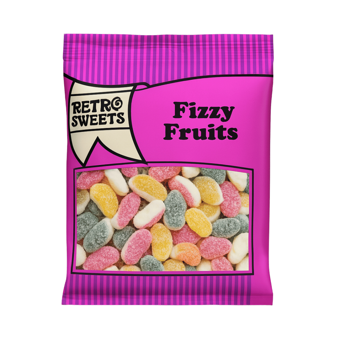 Add a burst of excitement to your treat stash with Retro Sweets Fizzy Fruits. These colourful fruit-flavoured jelly sweets come with a fizzy sugar coating for a tangy kick and a soft foam jelly bottom for extra chewiness. A playful mix of flavours and textures that sweet lovers of all ages will enjoy.