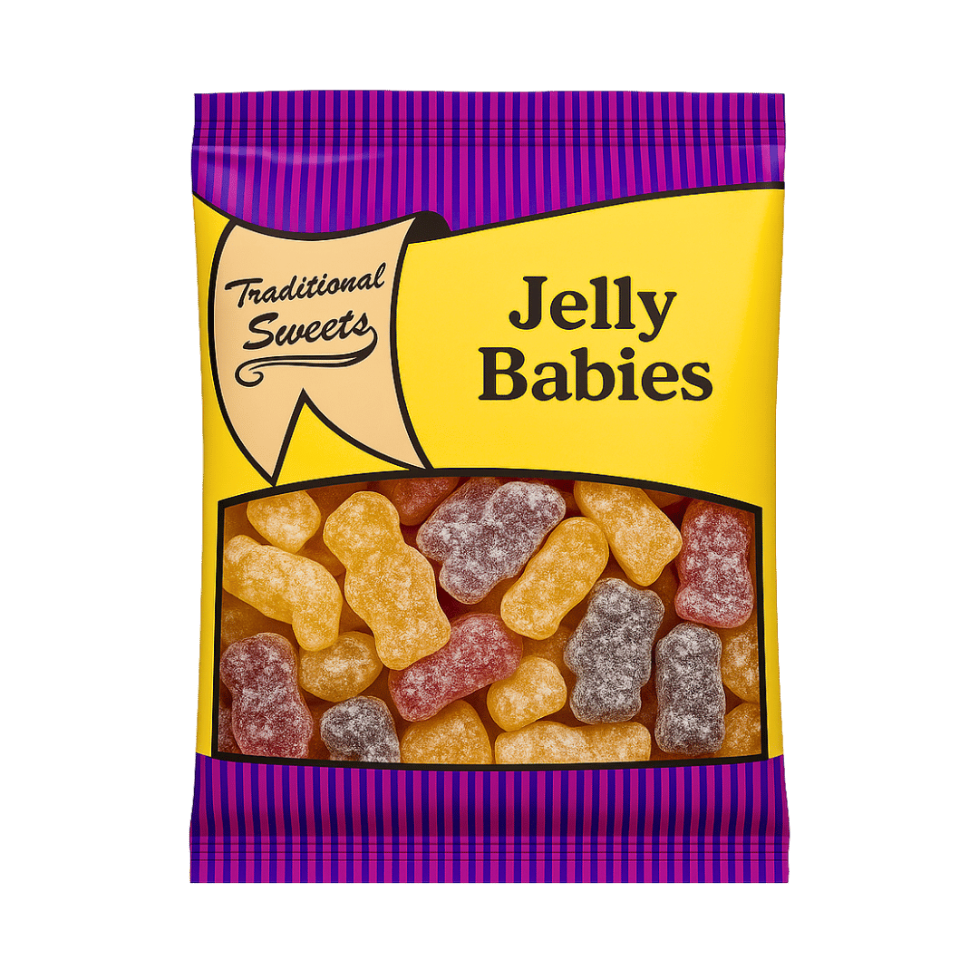 Traditional Sweets Jelly Babies are a true British favourite. These soft, fruit-flavoured jellies are shaped like little babies and lightly dusted in icing sugar for a nostalgic treat that’s been loved for generations. Perfect for sharing, gifting, or enjoying as a timeless sweet shop indulgence.
