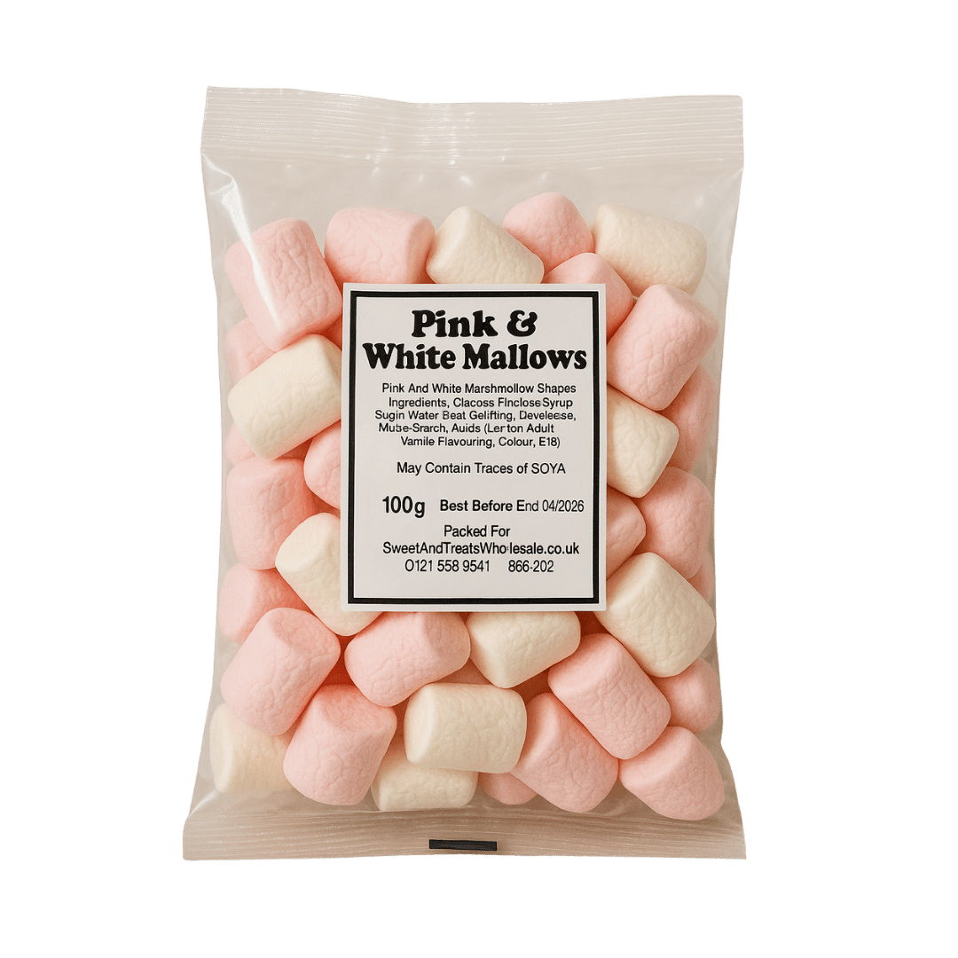 Retro Sweets Pink N White Mallows are large, pillowy marshmallows in classic pink and white. Light, fluffy and delicious, they’re perfect for snacking, sharing, or adding to hot drinks for an extra cosy treat.