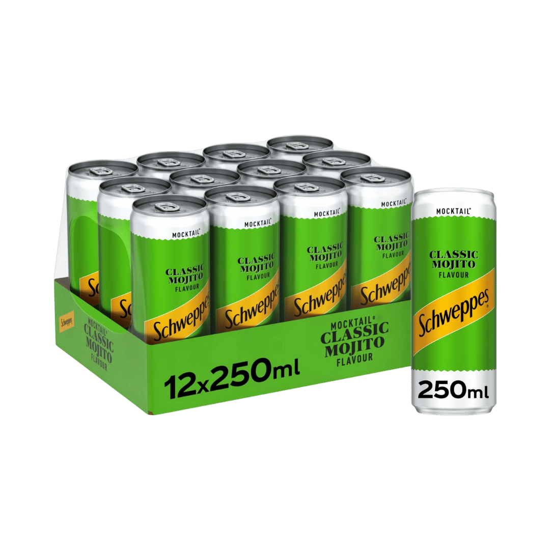 Enjoy the taste of a classic mojito without the alcohol, wherever you are. Schweppes Mocktail Classic Mojito is a sparkling soft drink infused with the zesty sharpness of lime and the cool, aromatic flavour of garden mint. With less than 0.5% alcohol, this ready-to-drink mocktail is the perfect way to bring refreshing vibes to any occasion – no mixing, no muddling, just twist, pour, and enjoy.
