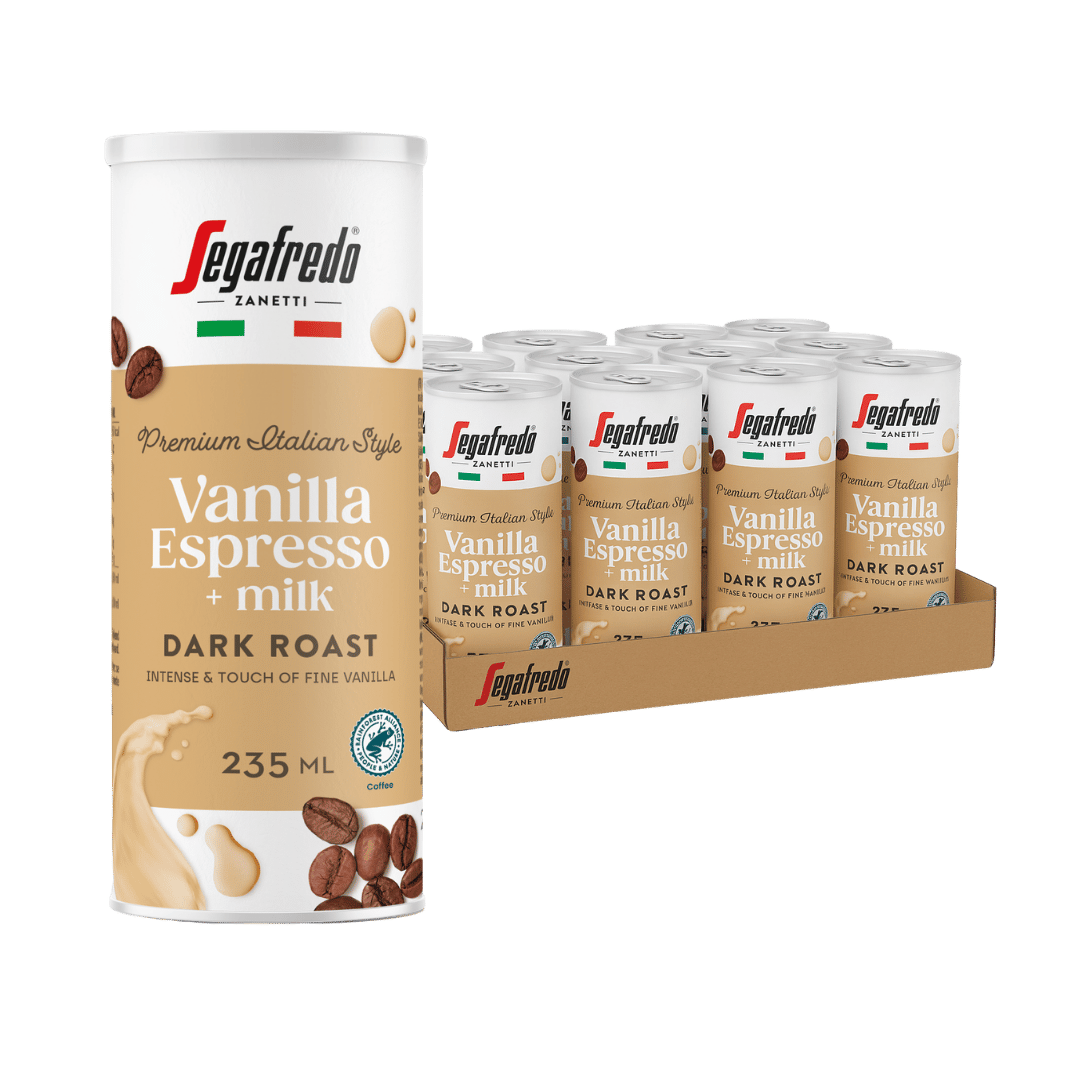 Segafredo Vanilla Espresso + Milk Iced Coffee combines rich, dark roast Italian espresso with fresh milk and a hint of vanilla for a smooth, indulgent pick-me-up. Perfect for enjoying chilled on a busy morning, at work, or as a refreshing afternoon treat.