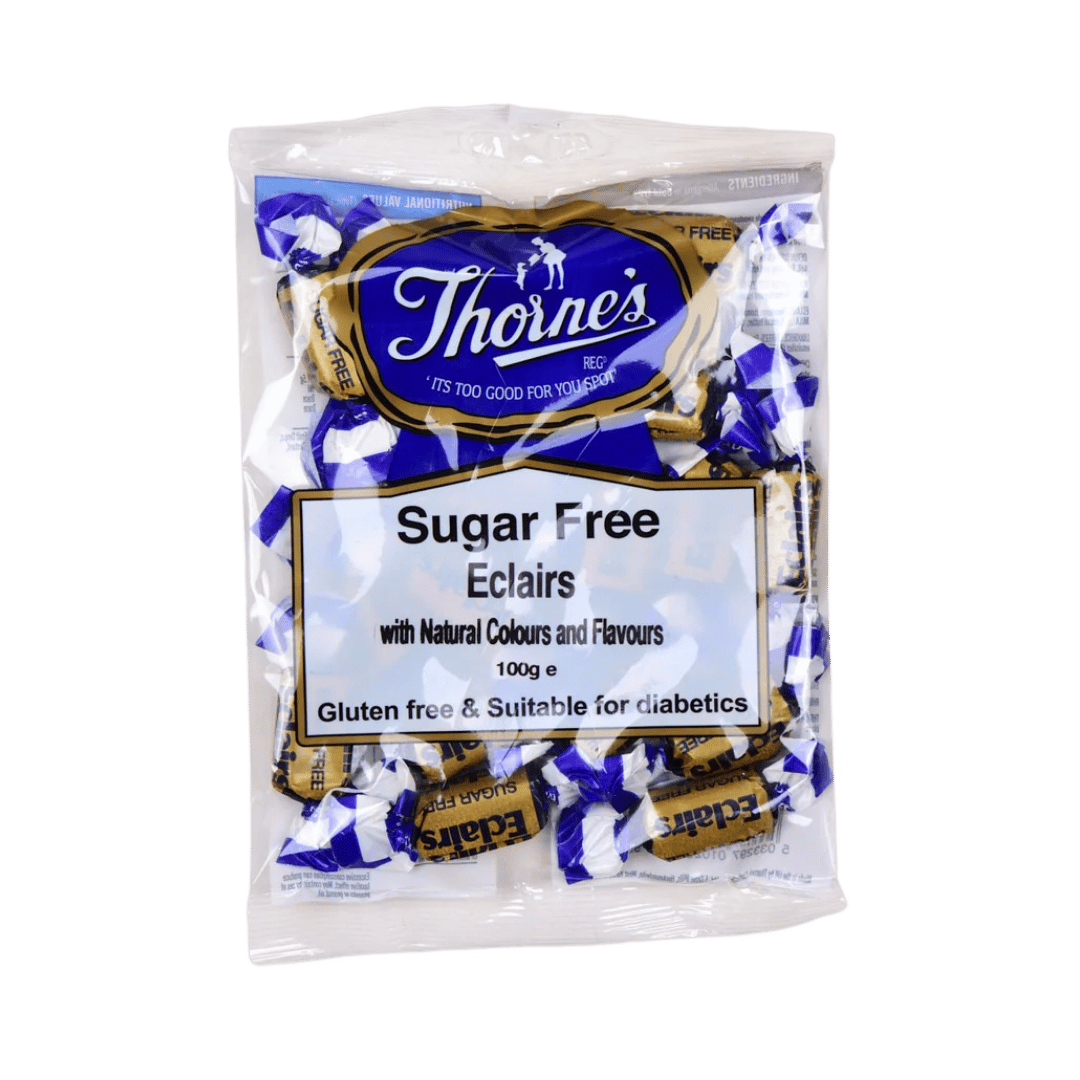 Savour the satisfying chew of Thornes Sugar Free Eclairs – rich, buttery toffee on the outside, with a smooth chocolate core at the centre. It’s a classic treat, lovingly crafted without sugar, but full of flavour. One bite and you’ll see why this combo is truly timeless.