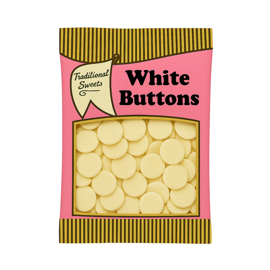 Traditional Sweets White Chocolate Buttons are smooth, creamy candy pieces in the classic button shape. Made with delicious white chocolate flavour, they’re a nostalgic treat perfect for sharing or enjoying all to yourself.