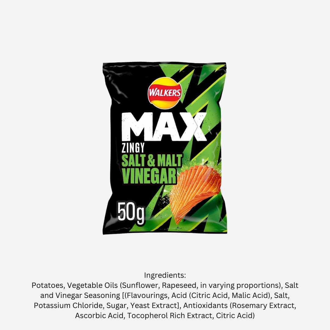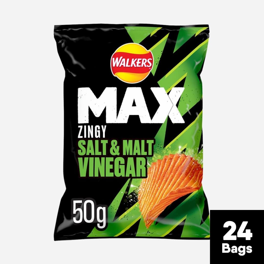Walkers Max Zingy Salt & Vinegar Crisps – 24 x 50g Packs 🥔🧂💥