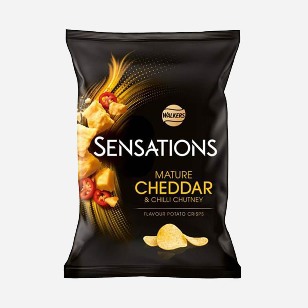 The Mature Cheddar & Chilli Chutney flavour pairs the creamy richness of aged cheddar with a warming blend of chutney spices, including clove and ginger, all rounded off with a sweet, subtle heat. A perfect balance of savoury and spice in every bite.