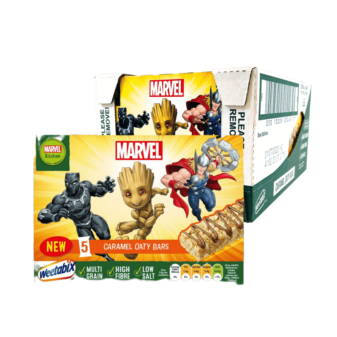 Bring a heroic twist to snack time with Weetabix Marvel Caramel Oaty Bars! Packed with multi-grain goodness, these bars are high in fibre and low in salt, making them a smart and satisfying choice for kids and grown-ups alike.