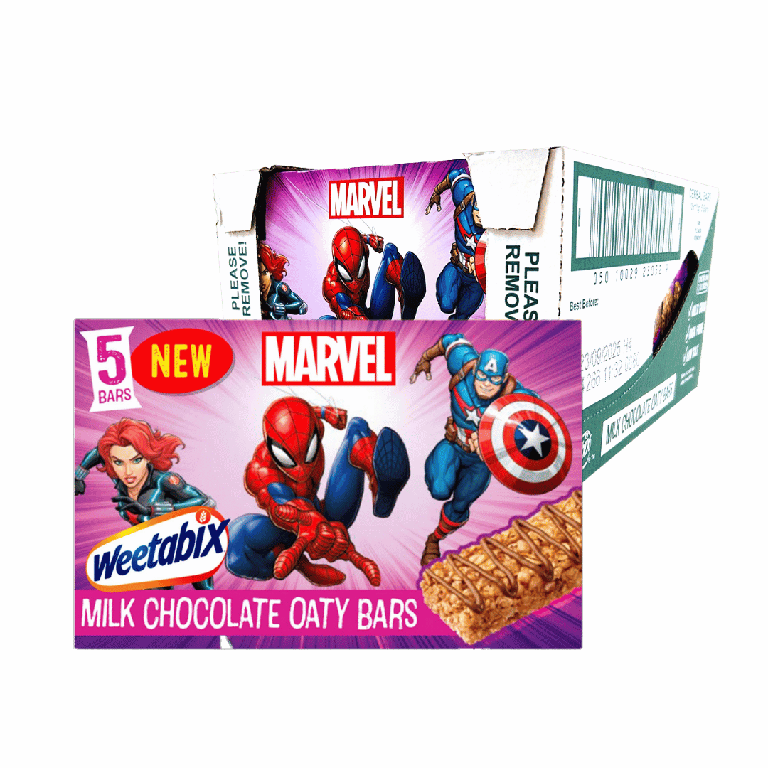 Bring a heroic twist to snack time with Weetabix Marvel Milk Chocolate Oaty Bars! Packed with multi-grain goodness, these bars are high in fibre and low in salt, making them a smart and satisfying choice for kids and grown-ups alike.